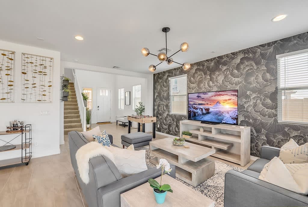 AZPH13-92nd - Goodlife Vacation Homes Welcome to your perfect getaway in our two-story 2,442 sq ft family-friendly haven. The first floor greets you with a covered breezeway leading to a foyer, which opens up to a spacious Great Room, dining area, and kitchen. The attached covered patio extends this open living space, providing a seamless indoor-outdoor experience. Upstairs, you'll find a versatile loft, secondary bedrooms, and an owner's suite featuring a luxurious bathroom and walk-in closet. Located in a gated community, our 3-bedroom, 2.5-bath home is designed for both relaxation and entertainment. The living and dining areas boast tile flooring, tall ceilings, quartz countertops, and stainless-steel appliances, including a gas stove. All bedrooms are located upstairs, offering privacy and comfort with 1 king bed, 2 queen beds, a full futon in the den, and additional blowup mattresses for extra guests. The kitchen is fully equipped with a refrigerator, ice dispenser, microwave, oven, blender, stove, Keurig coffee maker, dishwasher, and water dispenser. Entertainment options abound with Smart TVs in the living room (65"), master bedroom (55"), and den (55”), all ready for you to log in to your favorite apps with your own accounts. The smart thermostat ensures comfort with central A/C and heat. Step outside to the turf backyard, perfect for relaxing with your group! Enjoy the gas BBQ grill, propane fire pit, and ample outdoor seating, including a full seating area, cushioned chairs, and a long cushion bench. For added fun, there's a foosball table inside and corn hole set outside. You'll also have the convenience of a washer and dryer. With mountain views and a prime location close to the freeway, West Gate Mall, Crystal Lagoons Water Park, and just two blocks from the Stadium, this home is the ideal spot for your next vacation. Accommodating up to 10 guests, this beautiful retreat is ready to welcome you and your group, providing a memorable stay. **BED CONFIGURATION** (All located on second floor) Bedroom One: King bed Bedroom Two: Queen bed Bedroom Three: Queen bed Den: Full Futon Plus 1 king air mattress and 1 queen air mattress All guests will be required to sign a rental agreement prior to receiving check in instructions. Due To A New City Ordinance: • All reservations will go through a verification process • Please be sure your full name is entered on your reservation when booking • IDs will be requested for verification after booking • We report and prosecute all credit card fraud STR-2024-003945 TPT Number - #21569249 AZPH13-92nd - Good Life Vacation Homes Welcome to your perfect getaway in our two-story 2,442 sq ft family-friendly haven. The first floor greets you with a covered breezeway leading to a foyer, which opens up to a spacious Great Room, dining area, and kitchen. The attached covered patio extends this open living space, providing a seamless indoor-outdoor experience. Upstairs, you'll find a versatile loft, secondary bedrooms, and an owner's suite featuring a luxurious bathroom and walk-in closet. Located in a gated community, our 3-bedroom, 2.5-bath home is designed for both relaxation and entertainment. The living and dining areas boast tile flooring, tall ceilings, quartz countertops, and stainless-steel appliances, including a gas stove. All bedrooms are located upstairs, offering privacy and comfort with 1 king bed, 2 queen beds, a full futon in the den, and additional blowup mattresses for extra guests. The kitchen is fully equipped with a refrigerator, ice dispenser, microwave, oven, blender, stove, Keurig coffee maker, dishwasher, and water dispenser. Entertainment options abound with Smart TVs in the living room (65"), master bedroom (55"), and den (55”), all ready for you to log in to your favorite apps with your own accounts. The smart thermostat ensures comfort with central A/C and heat. Step outside to the turf backyard, perfect for relaxing with your group! Enjoy the gas BBQ grill, propane fire pit, and ample outdoor seating, including a full seating area, cushioned chairs, and a long cushion bench. For added fun, there's a foosball table inside and corn hole set outside. You'll also have the convenience of a washer and dryer. With mountain views and a prime location close to the freeway, West Gate Mall, Crystal Lagoons Water Park, and just two blocks from the Stadium, this home is the ideal spot for your next vacation. Accommodating up to 10 guests, this beautiful retreat is ready to welcome you and your group, providing a memorable stay. **BED CONFIGURATION** (All located on second floor) Bedroom One: King bed Bedroom Two: Queen bed Bedroom Three: Queen bed Den: Full Futon Plus 1 king air mattress and 1 queen air mattress All guests will be required to sign a rental agreement prior to receiving check in instructions. Due To A New City Ordinance: • All reservations will go through a verification process • Please be sure your full name is entered on your reservation when booking • IDs will be requested for verification after booking • We report and prosecute all credit card fraud STR-2024-003945