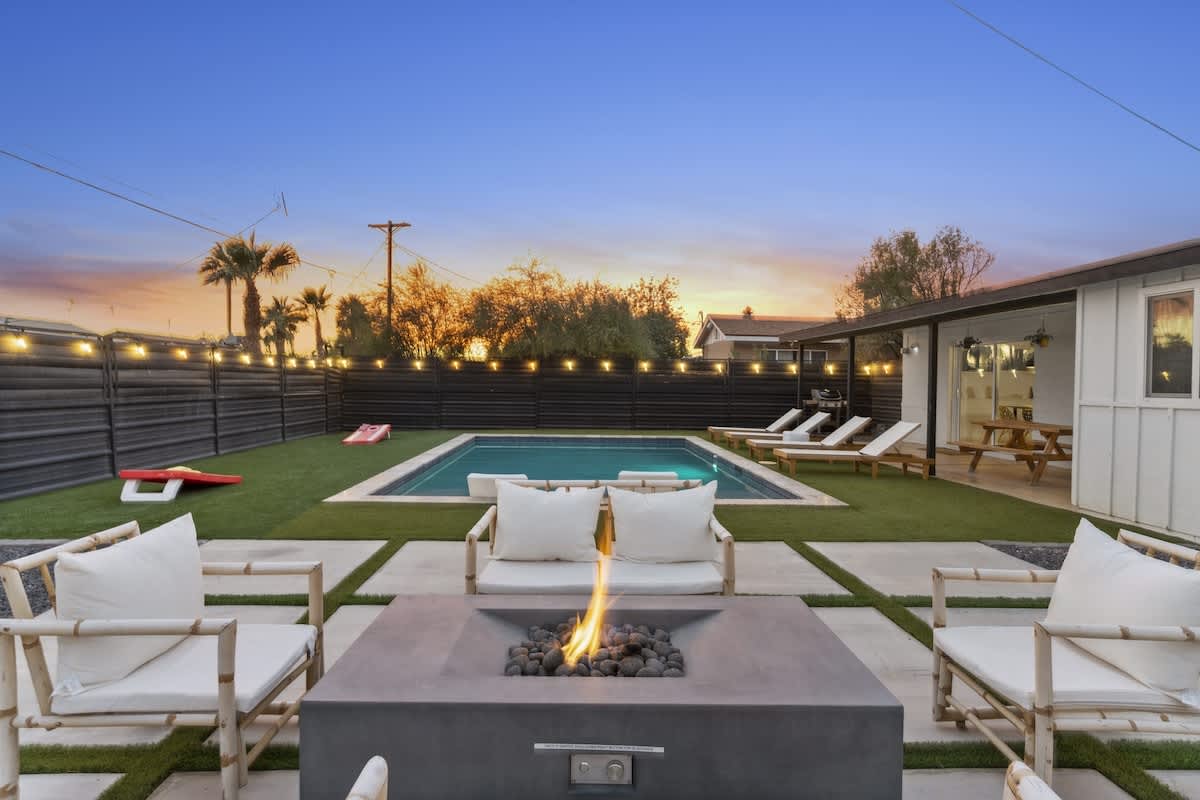 Fire Pit, Patio Furniture, Fenced-in Yard, Yard Games, and Pool are all available!