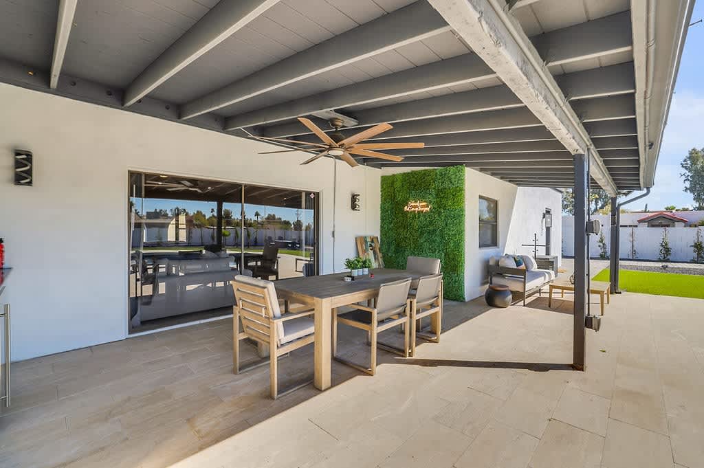 AZSC28-Ludlow - Good Life Vacation Homes Welcome to The Prickly Palace, your ultimate retreat in Scottsdale, Arizona! This stunning 4-bedroom, 2.5-bath home is a slice of paradise nestled in the heart of the desert. Step into luxury throughout our spacious interior, and venture into the backyard oasis, greeted by a sparkling private swimming pool, perfect for cooling off under the Arizona sun. With ample outdoor seating, including a spacious patio and cozy lounge area with a fire pit, you can soak up the sun and enjoy the unbeatable weather year-round. Immerse yourself in fun-filled afternoons with our selection of outdoor games, including the towering excitement of our jumbo-sized backyard King chess set, the competitive thrill of cornhole, and the joy of Playaboule bocce ball. Indoors, the excitement continues with an air hockey table in the living room, perfect for lively matches with friends and family. And for those seeking a classic game, head to the garage where you'll find a ping pong table ready for epic rallies. With endless options for entertainment, your stay with us promises unforgettable moments of laughter and enjoyment. Whether you're in town for spring training, one of Arizona's famed festivals, or simply seeking a getaway with friends or family, The Prickly Palace has you covered. This spacious oasis comfortably sleeps up to 12 guests, making it ideal for group gatherings and unforgettable vacations. From the moment you arrive, you'll be swept away by the charm and comfort of this desert gem. Scottsdale, Arizona offers a plethora of exciting activities for visitors of all ages and interests. Explore the vibrant arts scene by visiting the renowned galleries and studios in the city's Arts District, or immerse yourself in the rich cultural heritage at the Heard Museum. Our home is close to Kierland Commons (just two miles), and about 15 minutes from Six Flags Hurricane Harbor! Outdoor enthusiasts can hike through the stunning landscapes of the McDowell Sonoran Preserve or embark on a scenic hot air balloon ride over the picturesque desert. Indulge in world-class dining and shopping experiences at Scottsdale's upscale boutiques and restaurants, or unwind with a round of golf at one of the area's prestigious courses. For a taste of the Old West, saddle up for a horseback riding adventure through the rugged terrain, or experience the thrill of off-road desert tours. Whether you're seeking relaxation or adventure, Scottsdale promises an unforgettable getaway filled with fun and excitement. **Bed Configuration** (All located on the first floor, home is single story) Bedroom One: Queen (sleeps 2) Bedroom Two: Queen over Queen Bunk Bed (sleeps 4) Bedroom Three: Two Queens (sleeps 4) Bedroom Four: King (sleeps 2) ** KEY FEATURES** - TVs: Master bedroom 50” Fire Smart TV; Living room 64” Living room Fire Smart TV (use your own app logins) - Free high speed WiFi - Fresh linens, towels (including pool towels), soaps and shampoos are provided - Fully loaded kitchen Smart Refrigerator, Ice Dispenser, Microwave, Oven, Blender, Stove, Keurig Coffee Maker, Dishwasher, Water Dispenser - Central Air and Heat - Sparking Private Pool (no heating available) -Indoor and outdoor games - Washer and dryer - BBQ Grill (propane) and outdoor mini fridge -Around the fire pit there are four seating chairs as well as four lounge chairs by the pool. There is a patio table and chairs that seat six, and a small patio couch and table that seats three- plenty of space for outdoor dining and entertainment -Parking available for two cars in the driveway and additional on the street and so much more! All guests will be required to sign a rental agreement prior to receiving check in instructions. Due To A New City Ordinance: • All reservations will go through a verification process • Please be sure your full name is entered on your reservation when booking • IDs will be requested for verification after booking • We report and prosecute all credit card fraud STR-2024-001792