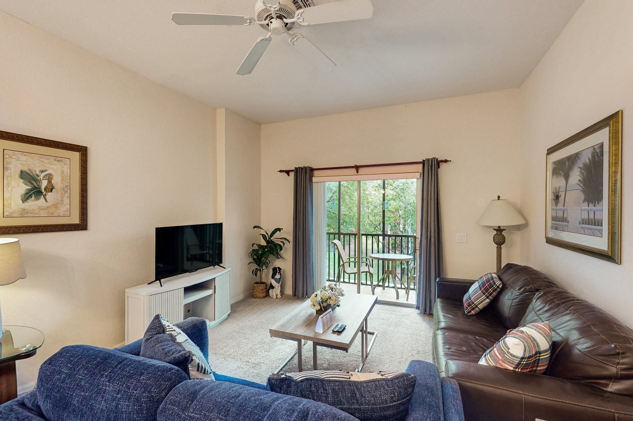 Boasting more than 1,200 square feet of space, the 3-bedroom Abacos villas at Bahama Bay Resort & Spa are ideal for family vacations or group getaways. Comfortable queen-sized beds are standard in the master bedroom and first guest bedroom, while the second guest bedroom features two twin beds. Additional sleeping space is available via a sleeper-sofa that opens up into a queen-sized bed in the living room. The Abacos villas feature two full bathrooms. Enjoy meals in the fully-equipped kitchen which includes all major appliances such as a refrigerator, oven, stove and microwave, and also includes cookware, utensils, and glassware. With plenty of room to spread out, guests will love the spacious living room-dining room area and can take in the scenery from a screened balcony with tables and chairs. An in-unit laundry room means guests can wash clothes while watching cable TV in the living room or master bedroom, or while keeping an eye on the little ones in the crib and highchair included in each unit. What's nearby: The Bahama Bay Resort & Spa boasts amenities like shared pools, hot tubs, fitness center, and a sauna. Located on the shores of Old Lake Davenport, you can enjoy the sand beach, view wildlife from the pier, or relax in a hammock. The resort is also conveniently located near Polo Park East Golf Course. Located only 10 miles from Walt Disney World, there are plenty of local dining and shopping options nearby. Disney Springs offers over 100 shops and 60 restaurants along with daily and nightly entertainment. Gatorland has a free-flight aviary, petting zoo, animal shows, zip line, and a new Stompin' Gator Off-Road Adventure. For additional entertainment, Sea World is just 16 miles away, Universal Studios is 22 miles and for the younger guests, Legoland Florida is 23 miles away from the resort. The Tradewinds Restaurant and Bar, located within the resort, is located poolside on the shore of Lake Davenport. With both indoor and outdoor seating, as well as a bar with lake views, guests can enjoy ice cold drinks, signature burgers and fries, and more! The Market Place, located in the main Clubhouse, offers a wide selection of items from sundries and necessities to souvenirs, apparel, gifts, drinks, snacks, ice cream, and accessories. Things to know: Free WiFi Full Kitchen Please note: All shared amenities are open and operating under limited capacity and new operating hours. Specific information will be provided after booking. Outdoor parking is available at no charge. Motorcycles are permitted but may not remain on a trailer. Trailers of any kind, RVs, and jet skis are not allowed. Commercial or logo-marked vehicles are also prohibited unless they are actively providing service or making a delivery.