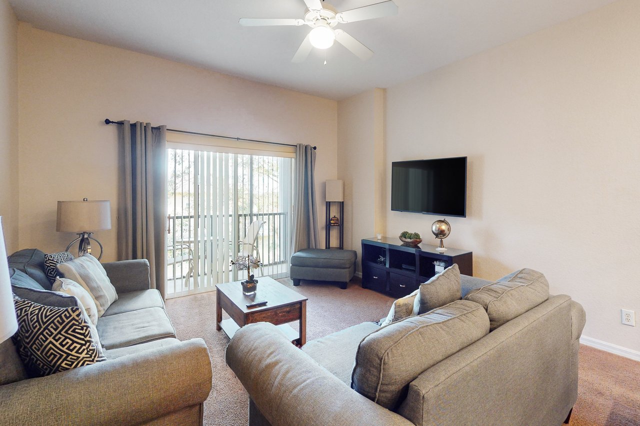 Boasting more than 1,200 square feet of space, the 3-bedroom Abacos villas at Bahama Bay Resort & Spa are ideal for family vacations or group getaways. Comfortable queen-sized beds are standard in the master bedroom and first guest bedroom, while the second guest bedroom features two twin beds. The Abacos villas feature two full bathrooms. Enjoy meals in the fully-equipped kitchen which includes all major appliances such as a refrigerator, oven, stove and microwave, and also includes cookware, utensils, and glassware. With plenty of room to spread out, guests will love the spacious living room-dining room area and can take in the scenery from a screened balcony with tables and chairs. An in-unit laundry room means guests can wash clothes while watching cable TV in the living room or master bedroom, or while keeping an eye on the little ones in the crib and highchair included in each unit. What's nearby: The Bahama Bay Resort & Spa boasts amenities like shared pools, hot tubs, fitness center, and a sauna. Located on the shores of Old Lake Davenport, you can enjoy the sand beach, view wildlife from the pier, or relax in a hammock. The resort is also conveniently located near Polo Park East Golf Course. Located only 10 miles from Walt Disney World, there are plenty of local dining and shopping options nearby. Disney Springs offers over 100 shops and 60 restaurants along with daily and nightly entertainment. Gatorland has a free-flight aviary, petting zoo, animal shows, zip line, and a new Stompin' Gator Off-Road Adventure. For additional entertainment, Sea World is just 16 miles away, Universal Studios is 22 miles and for the younger guests, Legoland Florida is 23 miles away from the resort. The Tradewinds Restaurant and Bar, located within the resort, is located poolside on the shore of Lake Davenport. With both indoor and outdoor seating, as well as a bar with lake views, guests can enjoy ice cold drinks, signature burgers and fries, and more! The Market Place, located in the main Clubhouse, offers a wide selection of items from sundries and necessities to souvenirs, apparel, gifts, drinks, snacks, ice cream, and accessories. Things to know: Free WiFi Full Kitchen Please note: All shared amenities are open and operating under limited capacity and new operating hours. Specific information will be provided after booking. Outdoor parking is available at no charge. Motorcycles are permitted but may not remain on a trailer. Trailers of any kind, RVs, and jet skis are not allowed. Commercial or logo-marked vehicles are also prohibited unless they are actively providing service or making a delivery.
