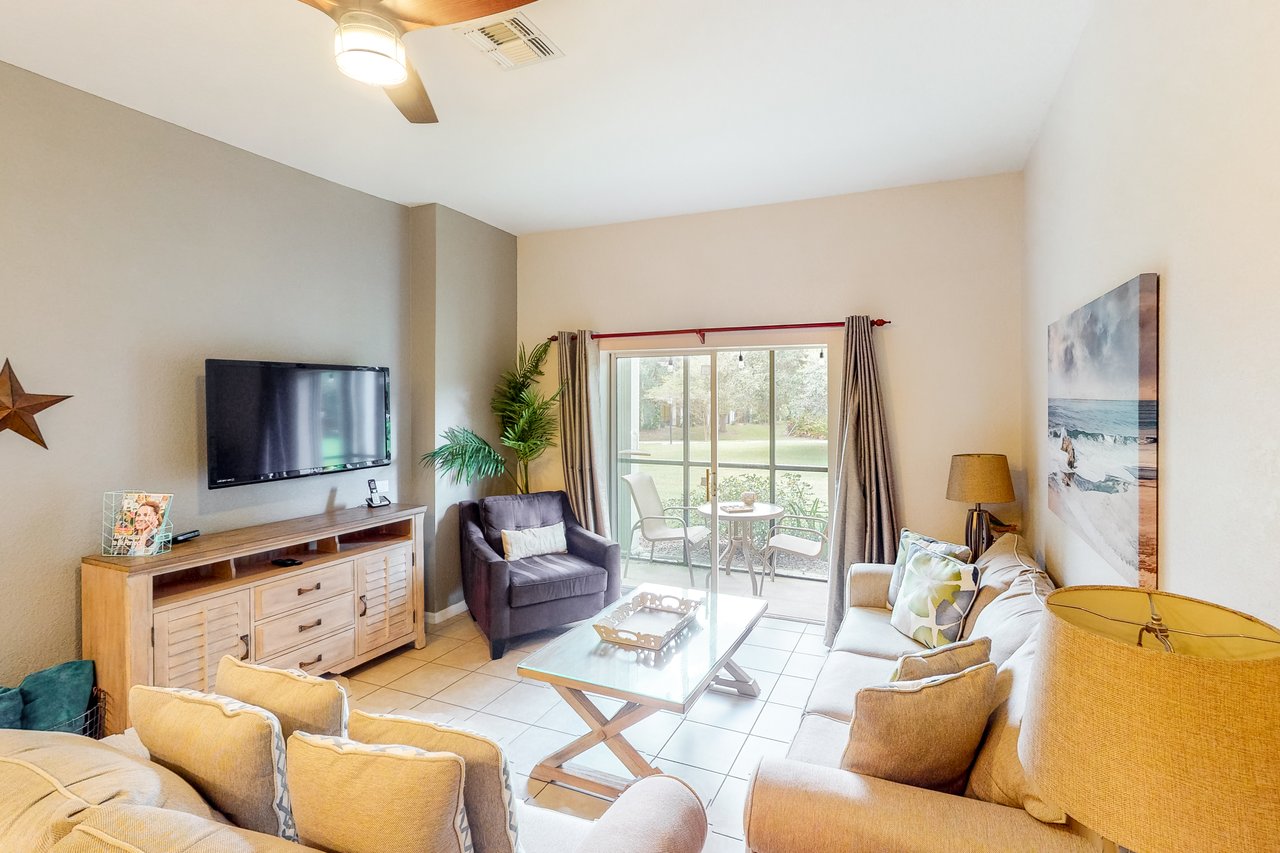 Find yourself on a truly special getaway to the sun and fun of Davenport when you make this bright condo your home away from home! With everything from a fully equipped kitchen to a private screened patio, everyone will have no problem slipping into vacation mode. Though the interior boasts comfortable furnishings and beautiful decor, stepping outside will be a treat as well. This complex offers a plethora of activities including a swimming pool, beach area, volleyball, tennis courts, a play area for the little ones, and a fitness facility for your enjoyment. After a full day of excitement, everyone can gather for a movie night on the flatscreen TV or sip a favorite cocktail as the sun goes down. Plus, there is a private washer and dryer to wash swimsuits if need be! What's nearby: Sitting north of downtown Davenport, this complex offers a sense of seclusion and privacy while still being close to everything that this area is known for. If you brought the whole family along, a trip over to Disney World (eight miles), SeaWorld Orlando (18 miles), or Universal Studios (22 miles) for endless amusement. For a bit of excitement closer to home, rent a paddleboard or kayak and spend an afternoon on Old Lake Davenport soaking up the sunshine. The Tradewinds Restaurant and Bar, located within the resort, is located poolside on the shore of Lake Davenport. With both indoor and outdoor seating, as well as a bar with lake views, guests can enjoy ice cold drinks, signature burgers and fries, and more! The Market Place, located in the main Clubhouse, offers a wide selection of items from sundries and necessities to souvenirs, apparel, gifts, drinks, snacks, ice cream, and accessories. Things to know: Free WiFi Full kitchen Please note: All shared amenities are open and operating under limited capacity and new operating hours. Specific information will be provided after booking. Outdoor parking is available at no charge. Motorcycles are permitted but may not remain on a trailer. Trailers of any kind, RVs, and jet skis are not allowed. Commercial or logo-marked vehicles are also prohibited unless they are actively providing service or making a delivery.