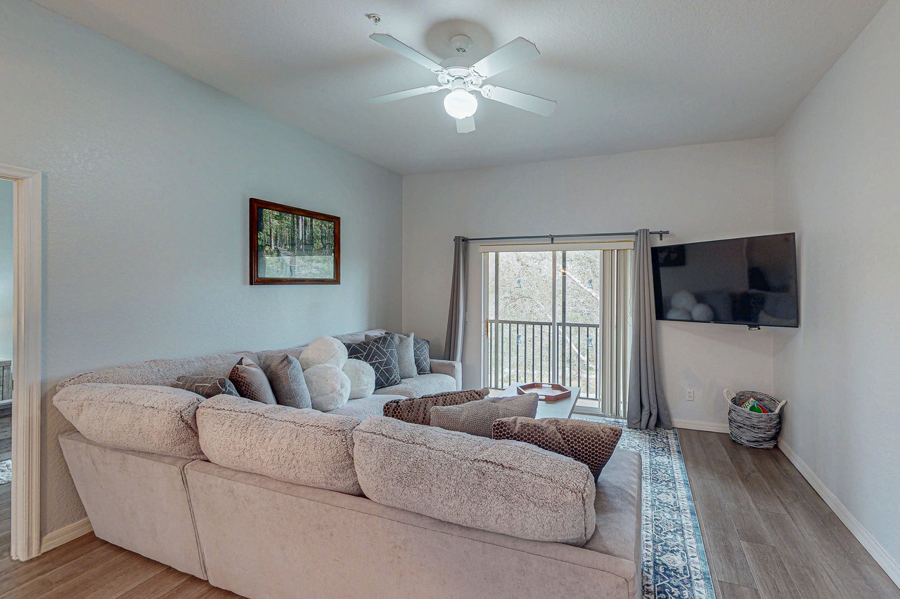 Located within the exclusive Bahama Bay Resort is this modern Grand Bahama penthouse perfect for large groups looking for a fun, family-friendly base just minutes from the Magic Kingdom. The condo features 1,700 square feet of open plan living with three generous bedrooms, a modern kitchen, two sparkling bathrooms, and a screened-in porch. Enjoy the luxury resort amenities with four pools, six spas, tennis courts, a kids splash pad, and two restaurants with a bar overlooking the pool deck just to name a few. Walk through the picturesque resort grounds and up to the spacious Grand Bahama Penthouse where you are greeted with bright, sun-filled rooms with everything you could need for a relaxing family getaway. The open living area is filled with a large modular lounge with room for everyone making it the perfect place for a movie night on the big screen after a fun day out at Disney. Cook up all your favorites in the fully equipped kitchen with all the cookware and utensils you could need. There is a large fridge/freezer with a water and ice dispenser, a freestanding oven and cooktop, a microwave, a coffee machine, and even a dishwasher to handle all the cleaning up. Eat together at the cabana-style dining table with additional seating up at the breakfast bar, or if you don’t feel like cooking, walk over to the two on-site restaurants serving up family-friendly meals all day. There are three generous bedrooms within the penthouse with each bed topped in soft, hotel-quality linen for a perfect night’s sleep along with plenty of space to unpack and make yourself at home. There is a central bathroom with a full-size bath, a walk-in shower, and a vanity stocked with all the essentials as well as a handy laundry so you can pack light and wash on the go. Perfectly located only 10 miles from Walt Disney World and Disney Springs with over 100 shops and 60 restaurants along with daily and nightly entertainment. For additional entertainment, Sea World is just 16 miles away, Universal Studios is 22 miles and for the younger guests, Legoland Florida is 23 miles away from the resort. So if you are looking for the perfect base to experience all the magic of Disneyworld with all the conveniences of home combined with all the amenities of a resort, look no further than this spacious, penthouse condo for your next family getaway. Places to Visit During Your Stay