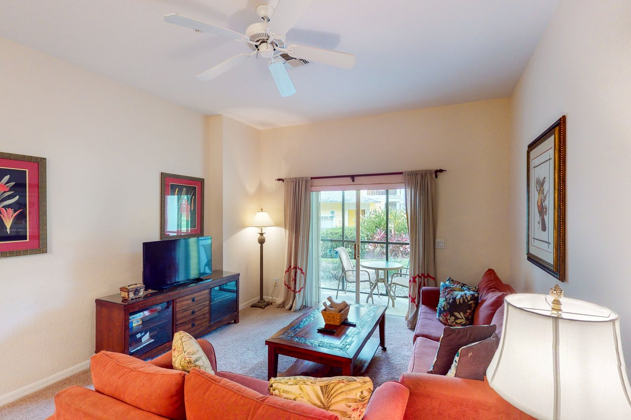 Boasting more than 1,200 square feet of space, the three-bedroom Abacos villas at Bahama Bay Resort & Spa are ideal for family vacations or group getaways. Comfortable queen-sized beds are standard in the master bedroom and first guest bedroom, while the second guest bedroom features two twin beds. Additional sleeping space is available via a sleeper-sofa that opens up into a queen-sized bed in the living room. The Abacos villas feature two full bathrooms. Enjoy meals in the fully-equipped kitchen which includes all major appliances such as a refrigerator, oven, stove and microwave, and also includes cookware, utensils, and glassware. With plenty of room to spread out, guests will love the spacious living room-dining room area and can take in the scenery from a screened balcony with tables and chairs. An in-unit laundry room means guests can wash clothes while watching cable TV in the living room or master bedroom, or while keeping an eye on the little ones in the crib and highchair included in each unit. What's nearby: The Bahama Bay Resort & Spa boasts amenities like shared pools, hot tubs, fitness center, and a sauna. Located on the shores of Old Lake Davenport, you can enjoy the sand beach, view wildlife from the pier, or relax in a hammock. The resort is also conveniently located near Polo Park East Golf Course. Located only 10 miles from Walt Disney World, there are plenty of local dining and shopping options nearby. Disney Springs offers over 100 shops and 60 restaurants along with daily and nightly entertainment. Gatorland has a free-flight aviary, petting zoo, animal shows, zip line, and a new Stompin' Gator Off-Road Adventure. For additional entertainment, Sea World is just 16 miles away, Universal Studios is 22 miles and for the younger guests, Legoland Florida is 23 miles away from the resort. The Tradewinds Restaurant and Bar, located within the resort, is located poolside on the shore of Lake Davenport. With both indoor and outdoor seating, as well as a bar with lake views, guests can enjoy ice cold drinks, signature burgers and fries, and more! The Market Place, located in the main Clubhouse, offers a wide selection of items from sundries and necessities to souvenirs, apparel, gifts, drinks, snacks, ice cream, and accessories. Things to know: Free WiFi Full Kitchen Please note: All shared amenities are open and operating under limited capacity and new operating hours. Specific information will be provided after booking. Outdoor parking is available at no charge. Motorcycles are permitted but may not remain on a trailer. Trailers of any kind, RVs, and jet skis are not allowed. Commercial or logo-marked vehicles are also prohibited unless they are actively providing service or making a delivery.