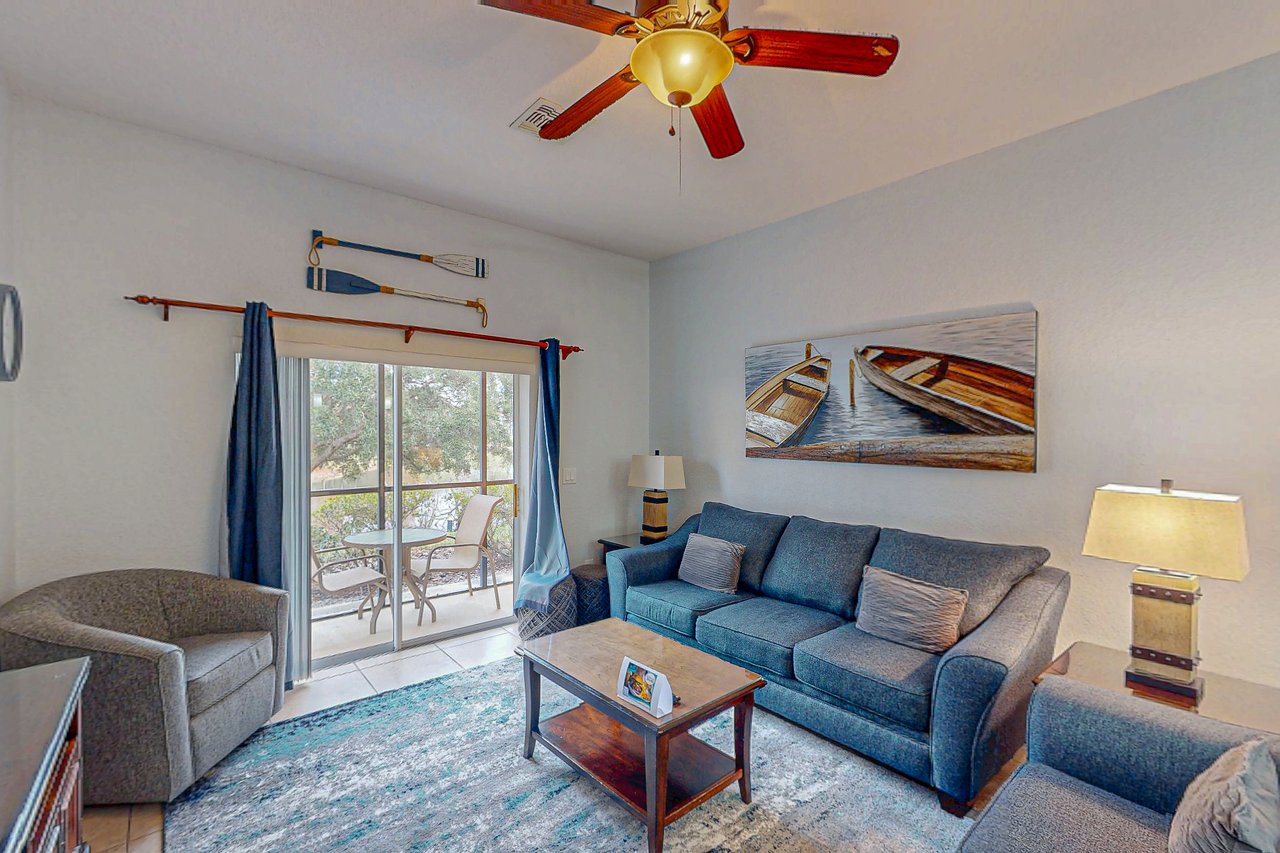 Boasting more than 1,200 square feet of space, this three-bedroom Abacos villa at Bahama Bay Resort & Spa is ideal for family vacations or group getaways. A comfortable king-sized bed is standard in the master bedroom and the first guest bedroom, while the second guest bedroom features two twin beds. Additional sleeping space is available via a sleeper sofa that opens up into a queen-sized bed in the living room. The Abacos villas feature two full bathrooms. Enjoy meals in the fully equipped kitchen, which includes all major appliances such as a refrigerator, oven, stove, and microwave, and also includes cookware, utensils, and glassware. With plenty of room to spread out, guests will love the spacious living room-dining room area and can take in the scenery from a screened balcony with tables and chairs. An in-unit laundry room means guests can wash clothes while watching cable TV in the living room or master bedroom, or while keeping an eye on the little ones in the crib and highchair included in each unit. Plus, each room offers a flatscreen TV for everyone to be able to watch their own favorite shows with ease. What's nearby: The Bahama Bay Resort & Spa boasts amenities like shared pools, hot tubs, a fitness center, and a sauna. Located on the shores of Old Lake Davenport, you can enjoy the sand beach, view wildlife from the pier, or relax in a hammock. The resort is also conveniently located near Polo Park East Golf Course. Located only 10 miles from Walt Disney World, there are plenty of local dining and shopping options nearby. Disney Springs offers over 100 shops and 60 restaurants, along with daily and nightly entertainment. Gatorland has a free-flight aviary, petting zoo, animal shows, zip line, and a new Stompin' Gator Off-Road Adventure. For additional entertainment, Sea World is just 16 miles away, Universal Studios is 22 miles and for the younger guests, Legoland Florida is 23 miles away from the resort. The Tradewinds Restaurant and Bar, located within the resort, is located poolside on the shore of Lake Davenport. With both indoor and outdoor seating, as well as a bar with lake views, guests can enjoy ice-cold drinks, signature burgers and fries, and more! The Market Place, located in the main Clubhouse, offers a wide selection of items from sundries and necessities to souvenirs, apparel, gifts, drinks, snacks, ice cream, and accessories. Things to know: Free WiFi Full Kitchen Please note: All shared amenities are open and operating under limited capacity and new operating hours. Specific information will be provided after booking. Outdoor parking is available at no charge. Motorcycles are permitted but may not remain on a trailer. Trailers of any kind, RVs, and jet skis are not allowed. Commercial or logo-marked vehicles are also prohibited unless they are actively providing service or making a delivery.