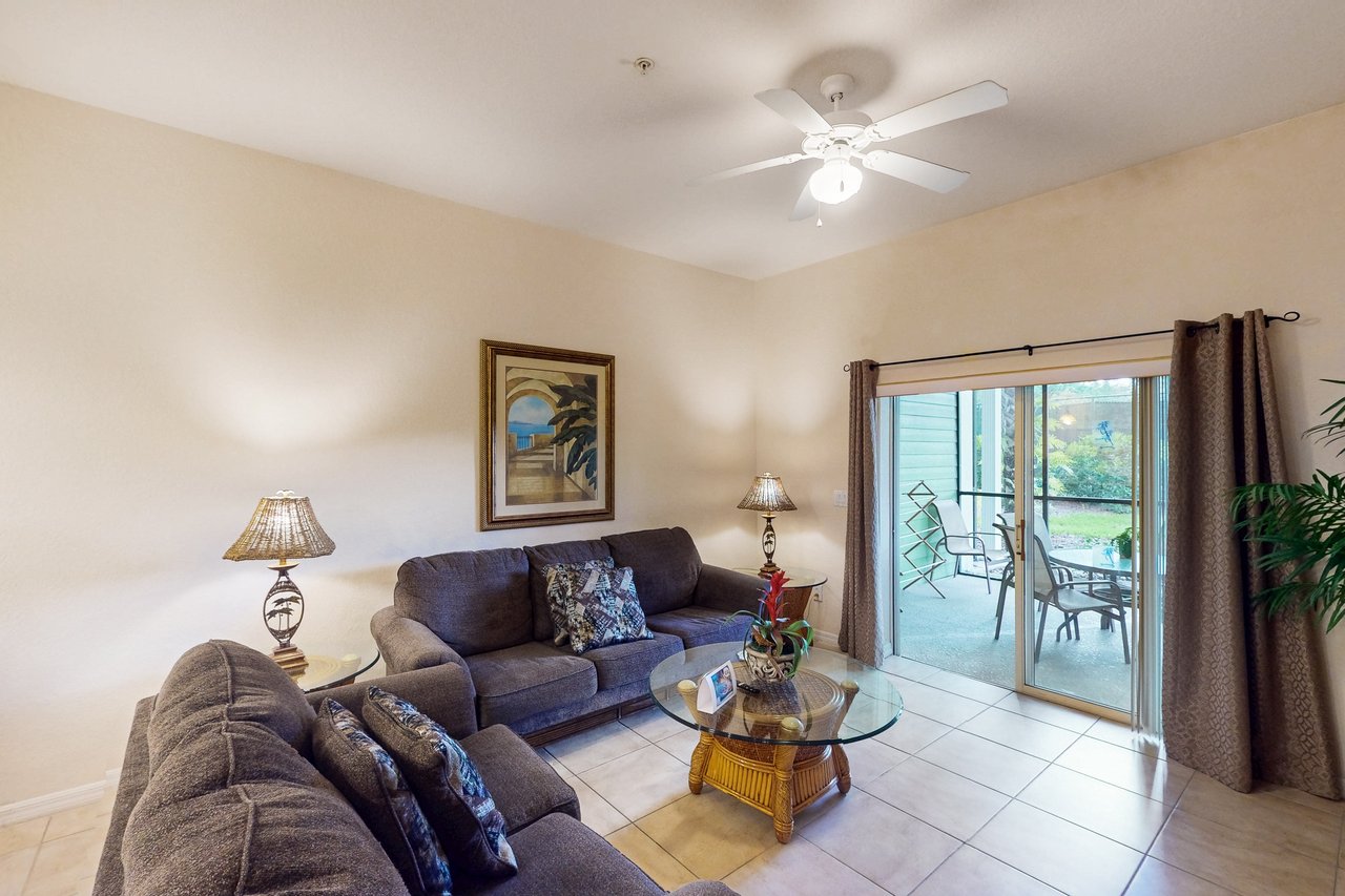The Andros is our plus-sized 2-bedroom villa boasting nearly 1,400 square feet of livable space and amazing architectural details like vaulted ceilings throughout. The Andros includes a king-sized bed in the master bedroom, two twin beds in the guest bedroom and a sofa in the living room that opens into a queen-sized bed. Available with laminate flooring or full carpet throughout, our Andros villa is perfect for vacationers who have children. The Andros has a crib, a highchair, and two full bathrooms - the master bath has dual sinks, separate showers, and a tub. It also features a large and fully-equipped kitchen which has all major appliances and includes crockery, cookware, utensils, and glassware so you can stay in and have family meals in the dining area. Enjoy coffee, drinks and the views from one of your two screened balconies. Or, stretch out in the spacious living area and enjoy cable TV while washing clothes in the in-unit laundry room. What's nearby: The Bahama Bay Resort & Spa boasts amenities like shared pools, hot tubs, fitness center, and a sauna. Located on the shores of Old Lake Davenport, you can enjoy the sand beach, view wildlife from the pier, or relax in a hammock. The resort is also conveniently located near Polo Park East Golf Course. Located only 10 miles from Walt Disney World, there are plenty of local dining and shopping options nearby. Disney Springs offers over 100 shops and 60 restaurants along with daily and nightly entertainment. Gatorland has a free-flight aviary, petting zoo, animal shows, zip line, and a new Stompin' Gator Off-Road Adventure. For additional entertainment, Sea World is just 16 miles away, Universal Studios is 22 miles and for the younger guests, Legoland Florida is 23 miles away from the resort. The Tradewinds Restaurant and Bar, located within the resort, is located poolside on the shore of Lake Davenport. With both indoor and outdoor seating, as well as a bar with lake views, guests can enjoy ice cold drinks, signature burgers and fries, and more! The Market Place, located in the main Clubhouse, offers a wide selection of items from sundries and necessities to souvenirs, apparel, gifts, drinks, snacks, ice cream, and accessories. Things to know: Free WiFi Full Kitchen Please note: All shared amenities are open and operating under limited capacity and new operating hours. Specific information will be provided after booking. Outdoor parking is available at no charge. Motorcycles are permitted but may not remain on a trailer. Trailers of any kind, RVs, and jet skis are not allowed. Commercial or logo-marked vehicles are also prohibited unless they are actively providing service or making a delivery.