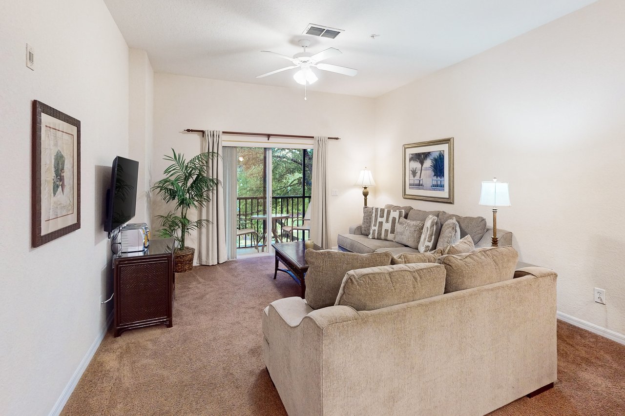 Boasting more than 1,200 square feet of space, the 3-bedroom Abacos villas at Bahama Bay Resort & Spa are ideal for family vacations or group getaways. Comfortable queen-sized beds are standard in the master bedroom and first guest bedroom, while the second guest bedroom features two twin beds. Additional sleeping space is available via a sleeper-sofa that opens up into a queen-sized bed in the living room. The Abacos villas feature two full bathrooms. Enjoy meals in the fully-equipped kitchen which includes all major appliances such as a refrigerator, oven, stove and microwave, and also includes cookware, utensils, and glassware. With plenty of room to spread out, guests will love the spacious living room-dining room area and can take in the scenery from a screened balcony with tables and chairs. An in-unit laundry room means guests can wash clothes while watching cable TV in the living room or master bedroom, or while keeping an eye on the little ones in the crib and highchair included in each unit. What's nearby: The Bahama Bay Resort & Spa boasts amenities like shared pools, hot tubs, fitness center, and a sauna. Located on the shores of Old Lake Davenport, you can enjoy the sand beach, view wildlife from the pier, or relax in a hammock. The resort is also conveniently located near Polo Park East Golf Course. Located only 10 miles from Walt Disney World, there are plenty of local dining and shopping options nearby. Disney Springs offers over 100 shops and 60 restaurants along with daily and nightly entertainment. Gatorland has a free-flight aviary, petting zoo, animal shows, zip line, and a new Stompin' Gator Off-Road Adventure. For additional entertainment, Sea World is just 16 miles away, Universal Studios is 22 miles and for the younger guests, Legoland Florida is 23 miles away from the resort. The Tradewinds Restaurant and Bar, located within the resort, is located poolside on the shore of Lake Davenport. With both indoor and outdoor seating, as well as a bar with lake views, guests can enjoy ice cold drinks, signature burgers and fries, and more! The Market Place, located in the main Clubhouse, offers a wide selection of items from sundries and necessities to souvenirs, apparel, gifts, drinks, snacks, ice cream, and accessories. Things to know: Free WiFi Full Kitchen Please note: All shared amenities are open and operating under limited capacity and new operating hours. Specific information will be provided after booking. Outdoor parking is available at no charge. Motorcycles are permitted but may not remain on a trailer. Trailers of any kind, RVs, and jet skis are not allowed. Commercial or logo-marked vehicles are also prohibited unless they are actively providing service or making a delivery.