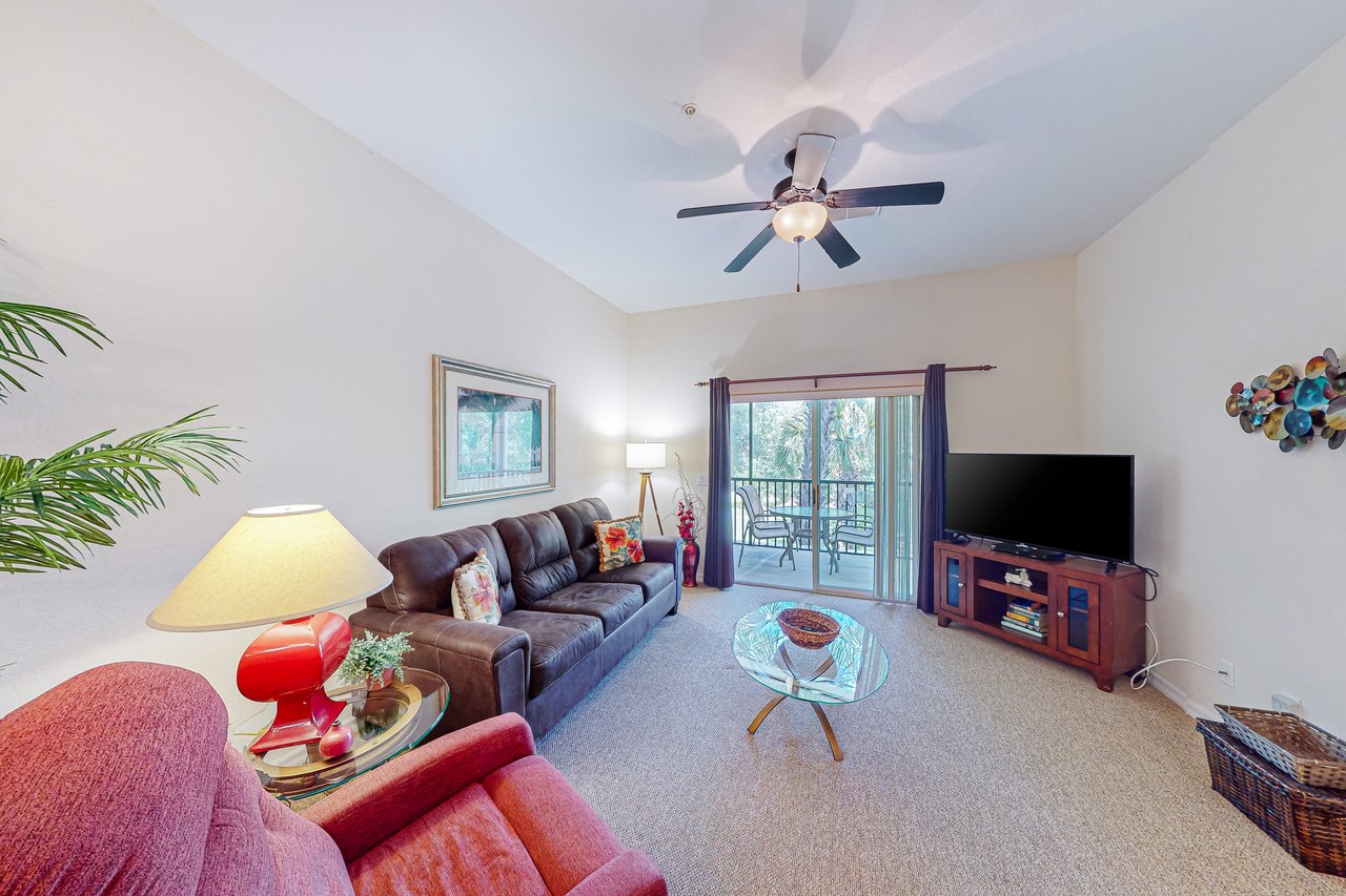 Blending comfort and value, the 2-bedroom San Salvador provides 1,116 square feet of space and enticing extras such as an in-unit laundry room, a private screened balcony and vaulted ceilings. The San Salvador includes a queen-sized bed in the master bedroom, two twin beds in the guest bedroom, and a sofa in the living room that opens into a queen-sized bed. Perfect for vacationers who have children, this villa includes a crib and a highchair, and has two full bathrooms. The San Salvador's large and fully-equipped kitchen has all the major appliances and also includes crockery, cookware, utensils and glassware so you can stay in and have family meals in the dining area. Two large televisions with included cable channels mean different groups can stretch out in the spacious living area and in the master bedroom to enjoy different programming at the same time. What's nearby: The Bahama Bay Resort & Spa boasts amenities like shared pools, hot tubs, fitness center, and a sauna. Located on the shores of Old Lake Davenport, you can enjoy the sand beach, view wildlife from the pier, or relax in a hammock. The resort is also conveniently located near Polo Park East Golf Course. Located only 10 miles from Walt Disney World, there are plenty of local dining and shopping options nearby. Disney Springs offers over 100 shops and 60 restaurants along with daily and nightly entertainment. Gatorland has a free-flight aviary, petting zoo, animal shows, zip line, and a new Stompin' Gator Off-Road Adventure. For additional entertainment, Sea World is just 16 miles away, Universal Studios is 22 miles and for the younger guests, Legoland Florida is 23 miles away from the resort. The Tradewinds Restaurant and Bar, located within the resort, is located poolside on the shore of Lake Davenport. With both indoor and outdoor seating, as well as a bar with lake views, guests can enjoy ice cold drinks, signature burgers and fries, and more! The Market Place, located in the main Clubhouse, offers a wide selection of items from sundries and necessities to souvenirs, apparel, gifts, drinks, snacks, ice cream, and accessories. Things to know: Free WiFi Full Kitchen Please note: All shared amenities are open and operating under limited capacity and new operating hours. Specific information will be provided after booking. Outdoor parking is available at no charge. Motorcycles are permitted but may not remain on a trailer. Trailers of any kind, RVs, and jet skis are not allowed. Commercial or logo-marked vehicles are also prohibited unless they are actively providing service or making a delivery. Must be 25 years of age or older to rent. Registered person must stay in the home throughout the reservation.
