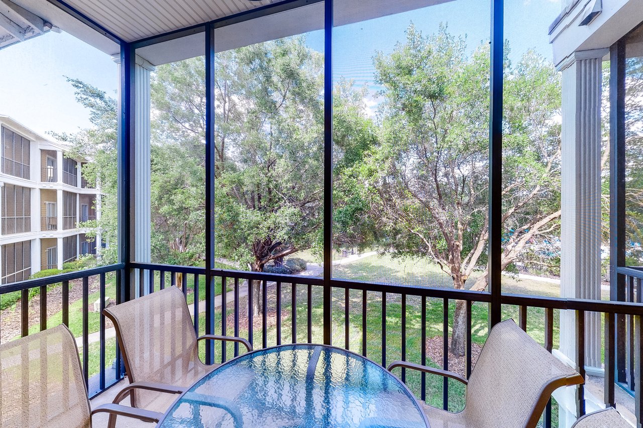 Blending comfort and value, this two-bedroom condo provides 1,116 square feet of space and enticing extras such as an in-home laundry room, a private screened balcony, and vaulted ceilings. This vacation rental includes a crib and a high chair, perfect for vacationers with children. The large, well-equipped kitchen has all the major appliances plus crockery, cookware, utensils, and glassware, so you can stay in and have family meals in the dining area. Stretch out with some cable TV on the sofa bed in the spacious living area after a fun-filled day.