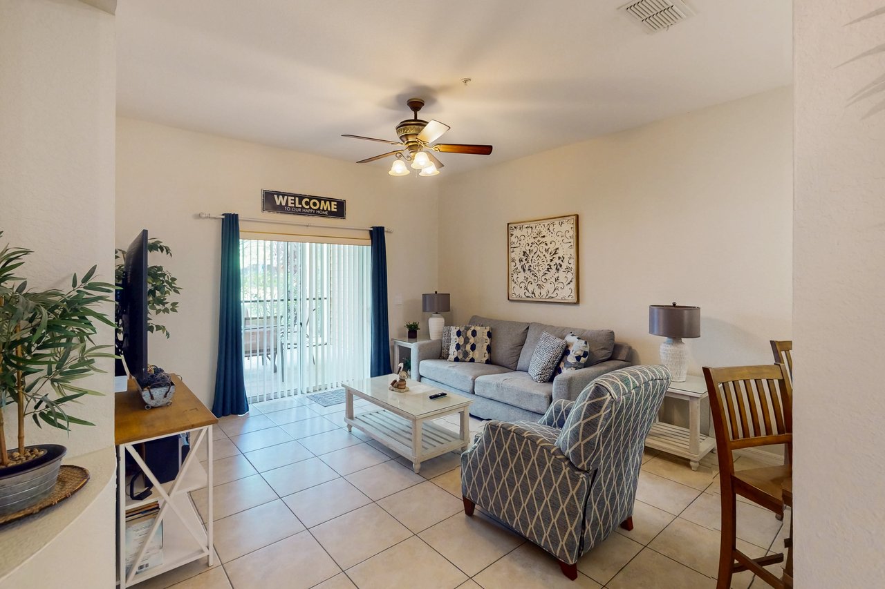 The Andros is our plus-sized, two bedroom villa boasting nearly 1,400 square feet of livable space and amazing architectural details like vaulted ceilings throughout. The Andros includes a king-sized bed in the master bedroom, two twin beds in the guest bedroom and a sofa in the living room that opens into a queen-sized bed. Available with laminate flooring or full carpet throughout, our Andros villa is perfect for vacationers who have children. The Andros has a crib, a highchair, and two full bathrooms - the master bath has dual sinks, separate showers, and a tub. It also features a large and fully-equipped kitchen which has all major appliances and includes crockery, cookware, utensils, and glassware so you can stay in and have family meals in the dining area. Enjoy coffee, drinks and the views from one of your two screened balconies. Or, stretch out in the spacious living area and enjoy cable TV while washing clothes in the laundry room. What's nearby: The Bahama Bay Resort & Spa boasts amenities like shared pools, hot tubs, fitness center, and a sauna. Located on the shores of Old Lake Davenport, you can enjoy the sand beach, view wildlife from the pier, or relax in a hammock. The resort is also conveniently located near Polo Park East Golf Course. Located only 10 miles from Walt Disney World, there are plenty of local dining and shopping options nearby. Disney Springs offers over 100 shops and 60 restaurants along with daily and nightly entertainment. Gatorland has a free-flight aviary, petting zoo, animal shows, zip line, and a new Stompin' Gator Off-Road Adventure. For additional entertainment, Sea World is just 16 miles away, Universal Studios is 22 miles and for the younger guests, Legoland Florida is 23 miles away from the resort. The Tradewinds Restaurant and Bar, located within the resort, is located poolside on the shore of Lake Davenport. With both indoor and outdoor seating, as well as a bar with lake views, guests can enjoy ice cold drinks, signature burgers and fries, and more! The Market Place, located in the main Clubhouse, offers a wide selection of items from sundries and necessities to souvenirs, apparel, gifts, drinks, snacks, ice cream, and accessories. Things to know: Free WiFi Full kitchen Please note: All shared amenities are open and operating under limited capacity and new operating hours. Specific information will be provided after booking. Outdoor parking is available at no charge. Motorcycles are permitted but may not remain on a trailer. Trailers of any kind, RVs, and jet skis are not allowed. Commercial or logo-marked vehicles are also prohibited unless they are actively providing service or making a delivery.