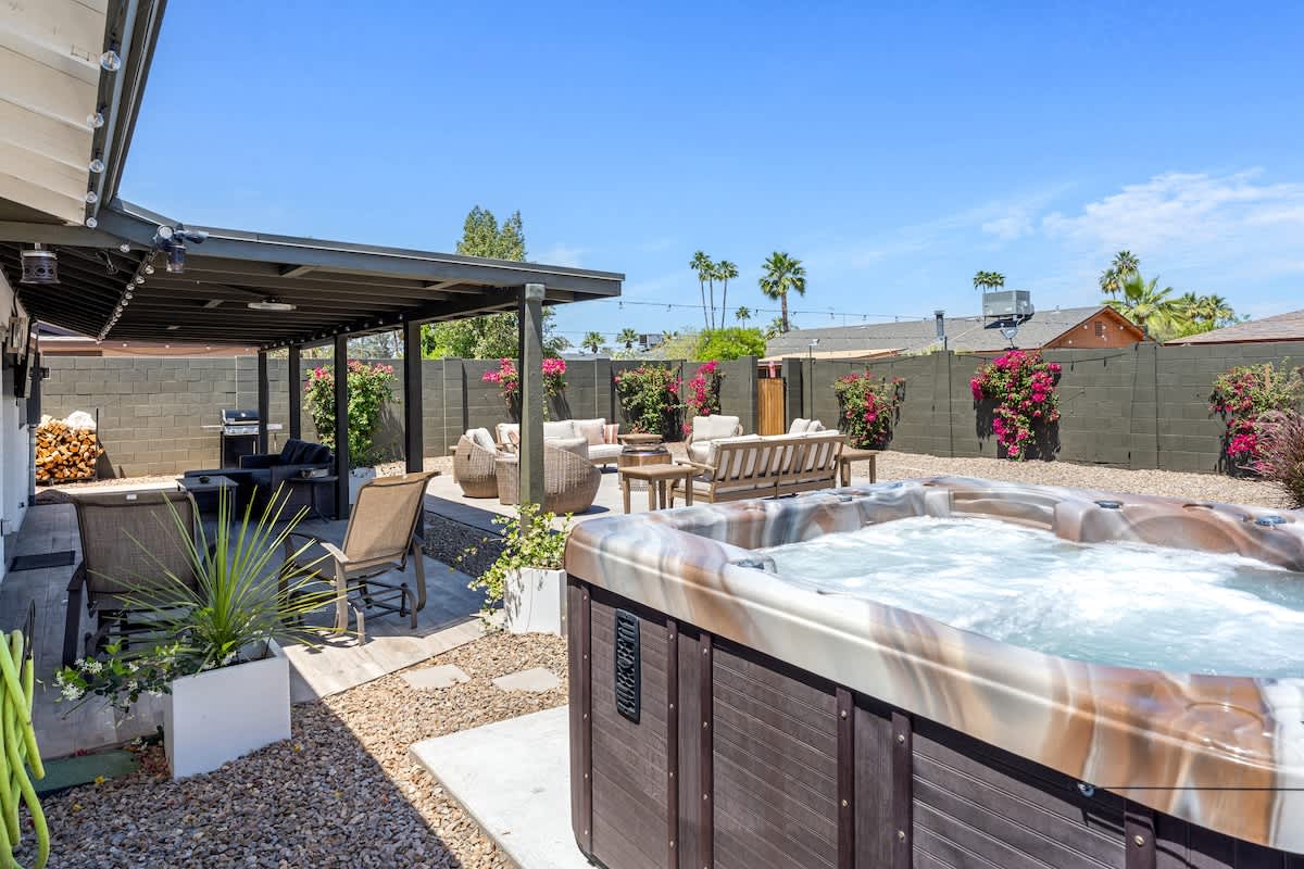 Balboa Bungalow - Goodlife Vacation Homes Beautifully remodeled 3 bedroom 2 bath home located in desirable Tempe Royal Palms. Close to ASU Tempe Campus. The master bedroom has a sleep number king size bed w/ beautiful en suite bath. Guest bedrooms both have queens size beds. All bedrooms have custom blackout shades. The living room has a 65" smart tv to enjoy all your favorite apps. Dining area seats 8. Kitchen is fully equipped with all amenities. Reverse Osmosis, fresh water. Beautifully finished patio and backyard makes it feel like it part of the living space. Due To A New City Ordinance: • All reservations will go through a verification process • Please be sure your full name is entered on your reservation when booking • IDs will be requested for verification after booking • We report and prosecute all credit card fraud STR-001136 TPT License #21532729 Balboa Bungalow - Good Life Vacation Homes Beautifully remodeled 3 bedroom 2 bath home located in desirable Tempe Royal Palms. Close to ASU Tempe Campus. The master bedroom has a sleep number king size bed w/ beautiful en suite bath. Guest bedrooms both have queens size beds. All bedrooms have custom blackout shades. The living room has a 65" smart tv to enjoy all your favorite apps. Dining area seats 8. Kitchen is fully equipped with all amenities. Reverse Osmosis, fresh water. Beautifully finished patio and backyard makes it feel like it part of the living space. Due To A New City Ordinance: • All reservations will go through a verification process • Please be sure your full name is entered on your reservation when booking • IDs will be requested for verification after booking • We report and prosecute all credit card fraud