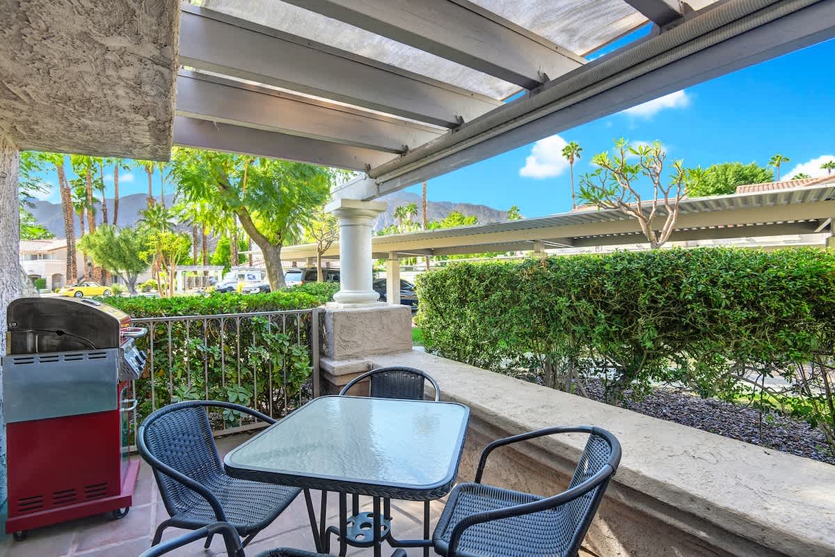 After a fun-filled day at one of the country clubs 3 pools, relax in the beautiful, light-filled living room with comfortable seating and a large Smart TV. Outside, there are 2 patios - perfect for dining alfresco or enjoying a happy hour cocktail with stunning desert vistas as your backdrop.