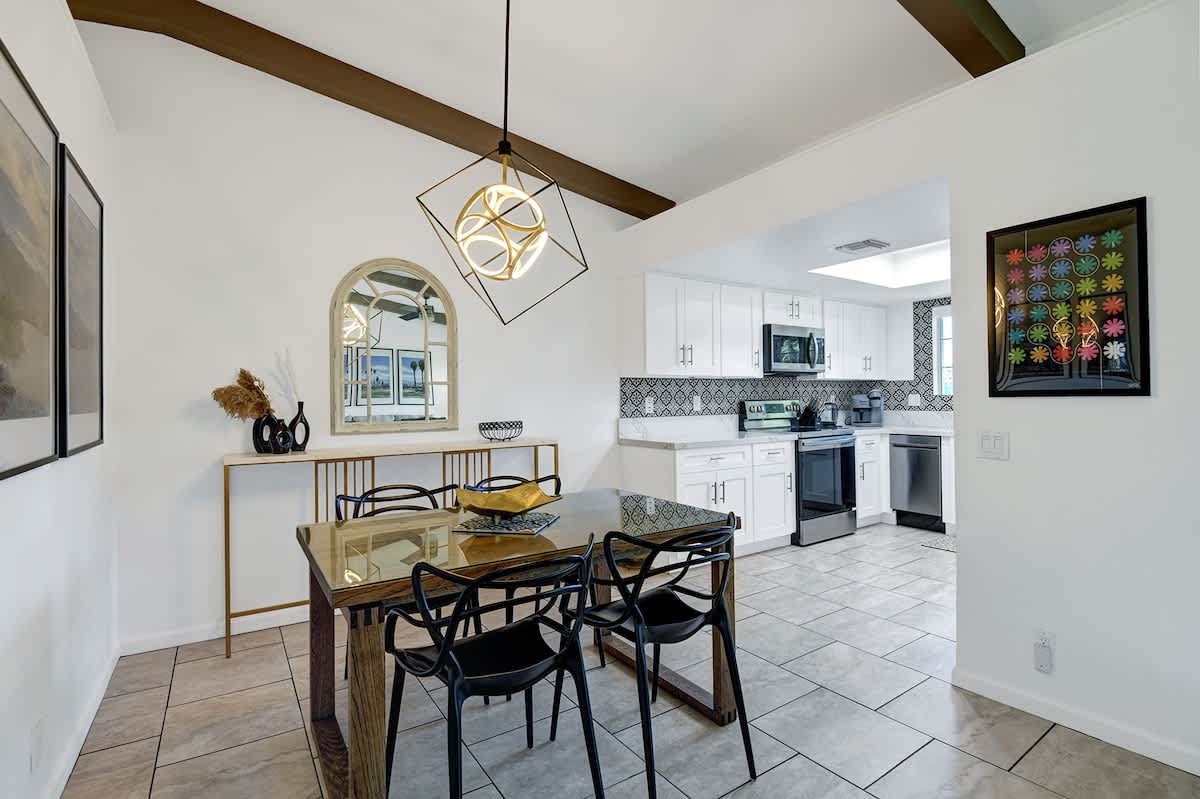 A blissful desert retreat awaits at Mesquite Bungalow Bliss. This gorgeous condo has everything you need for a dreamy getaway to Palm Springs.