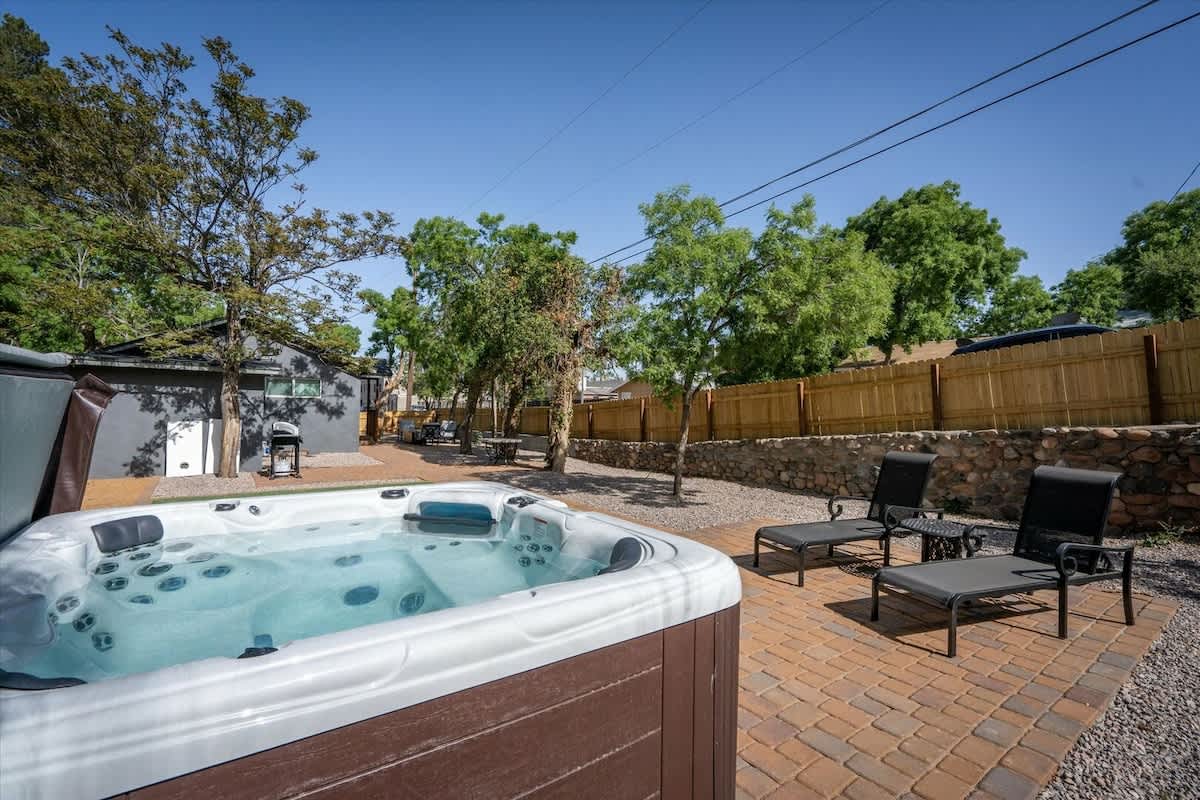 Welcome to our fun, private escape right in the heart of Old Town Cottonwood! Located just steps (literally) from the popular shopping, dining, and wine-centric area, this fully renovated property is the perfect retreat for a fun getaway, wine-tasting weekend, family gathering, and so much more. In the updated backyard, enjoy the resort-like setting complete with a heated spa, fire pit, lounge area, and more. The home itself has 2 bedrooms and 2 bathrooms, and thoughtful design touches throughout.