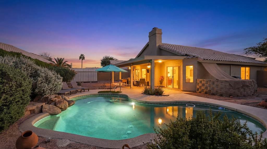 Welcome to your Palms of Paradise Oasis. The perfect getaway in sunny Peoria, Arizona — a beautifully designed 3-bedroom, 2-bath home that combines laid-back surf-boho style with rustic charm and modern comfort. Whether you’re traveling for family fun, a romantic retreat, a business trip, or a group getaway, this home has everything you need to relax, recharge, and make unforgettable memories.