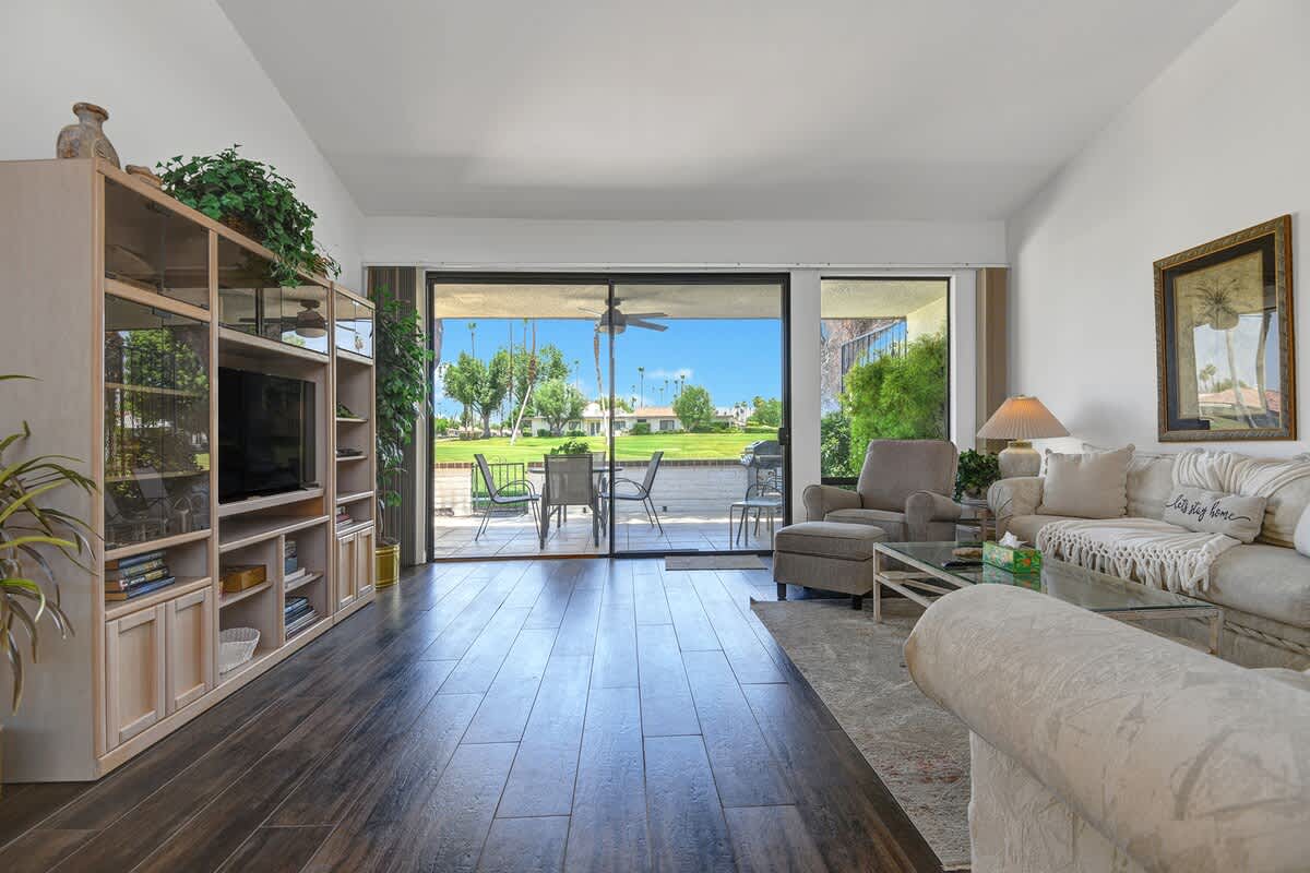 RP127 - Sunny Stay at Rancho Las Palmas - Alice Lodging Welcome to your perfect month-long desert retreat at Rancho Las Palmas Country Club in Rancho Mirage. This charming and comfortable home features 2 bedrooms, 2 bathrooms, and a den with a sleeper sofa‚ ideal for couples, friends, or small families. sits on the 4th fairway and offers peaceful golf course views, an open-concept layout, and all the comforts of home. The primary bedroom offers a king-sized bed and an ensuite bathroom, while the second bedroom includes two twin beds. The den is set up as a flexible bonus space with a pull-out sleeper sofa‚ great for reading, relaxing, or accommodating an additional guest. At the center of the home, a private atrium with lush plants and natural light creates a peaceful indoor-outdoor feel, bringing warmth and brightness to the living spaces. The spacious living room opens to a patio with golf course views, furnished with lounger chairs and a BBQ grill‚ perfect for soaking up the sun or enjoying meals outdoors. Other amenities include Smart TVs in every room with cable, high-speed WiFi, a fully equipped kitchen, washer and dryer, and access to community pools, spas, tennis courts, and the renowned Rancho Las Palmas golf course. Primary - King Second Bedroom - 2 Twin bed Den - Sofa Sleeper Full **Please note this property requires a 28-night minimum rental. COMMUNITY ACCESS: Play where you stay! Rancho Las Palmas Country Club offers a 27-hole full length Ted Robinson designed course, 25 championship tennis courts, Clubhouse with restaurant and lounge, pro shop and junior Olympic-size swimming pool. Access ONLY to community pools. You can enjoy any of the 26 community swimming pools and spas nearby your vacation condominium. Rancho Las Palmas offers access to golf, tennis and clubhouse dining on a fee basis. Omni Resort access is restaurant, spa facility on a fee basis. NO access to the Splash pool. Guests to contact clubhouse for fee schedule. Must be 25 years of age or older to rent. Please note that the person paying for the reservation needs to be the one checking in and the same person must stay in the home throughout the reservation.