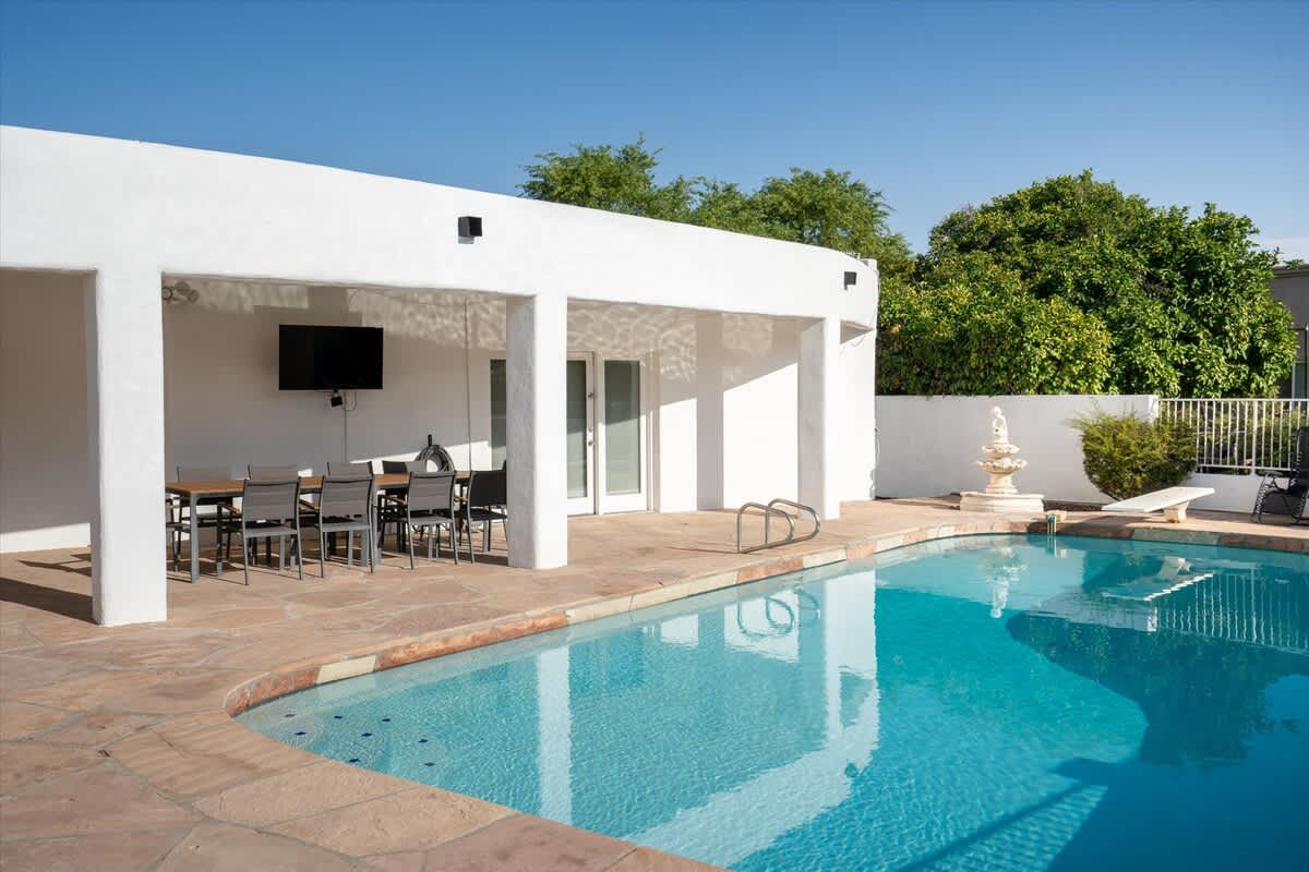The Nineteenth Hole - Good Life Vacation Homes Welcome to our magnificent, private escape right in the heart of Phoenix! Located just around the corner from Moon Valley Country Club, and only 22 minutes from the popular shopping and dining destinations of Kierland Commons and Scottsdale Quarter, this beautiful property is the perfect retreat for family gatherings, golf trips, or just a relaxing getaway. In the one-of-a-kind backyard, enjoy the resort-like setting complete with a pool, spa, fire pit, and more. The home itself has 4 bedrooms, 5.5 bathrooms, and thoughtful design touches throughout. There is plenty of parking in the horseshoe drive and garage, but we ask that no one park in the street. THIS HOME IS LOCATED IN A QUIET, RESIDENTIAL AREA AND BECAUSE IT IS A GOLF COURSE PROPERTY THERE ARE COMMON WALLS WITH NO BARRIER, NO LIVE MUSIC, LOUDSPEAKERS, AND NO LARGE GATHERINGS PERMITTED AT ANY TIME - DAY OR NIGHT. This home is professionally managed by a local, high-end hospitality company. We treat our homes as if they are our own. Each home is meticulously cleaned and put through a 35-point inspection checklist between guests to ensure absolute satisfaction. Our main business line is available during regular business hours for general questions, comments, and support, and can also assist with emergencies 24/7. We take great pride in what we do, and we go above and beyond to make sure our guests are completely satisfied with every stay. Thank you for considering this gorgeous home, and we are looking forward to hosting you. Popular Things To Do Driving Distance: Distance to Kierland Commons Mall: 22 minutes Distance to Downtown Phoenix: 22 minutes Distance to Phoenix Sun's Arena & Arizona Diamondbacks: 25 minutes Distance to Arizona Cardinals State Farm Stadium: 26 minutes Distance to Scottsdale Fashion Square Mall: 31 minutes Distance to Bell Bank Park: 54 minutes Nearby Airports: Distance to Phoenix Sky Harbor Airport: 22 minutes Distance to Phoenix-Mesa Gateway Airport: 53 minutes Resort-Style Backyard Amenities: Pool (No Heat) Spa Fire Pit BBQ Grill Putting Green Cornhole Indoor Games: Pool Table Bedroom Layout: Bedroom 1: King Bed, Two Ensuite Bathrooms Bedroom 2: King Bed, Ensuite Bathroom Bedroom 3: King Bed, Ensuite Bathroom Bedroom 4: Two Sets of Full-Over-Full Bunk Beds, Private Full Bathroom Extra Sleeping: Twin-Over-Twin Trundle Bed, Queen-Sized Air Mattress and Pak n Play, Private Half Bathroom Bathrooms: 5.5 The Neighborhood: This gorgeous Phoenix neighborhood is truly one of a kind. We do our absolute best to be fantastic neighbors - they are our friends! We love that we can share our home with our guests and ask that everyone abide by the quiet hours from 10pm-7am so that we can continue to serve our guests without disrupting our great neighborhood. Getting Around: We enjoy that our home is easily accessible with Ubers or Lyfts for those who do not rent a car or drive in for their family vacation! Our team of concierge is here to assist our guests with enjoying the cities of Phoenix or Scottsdale but if you're looking for a quiet time and prefer to find those items on your own we provide great info in our digital guidebooks! Other Things to Note: This home is fully furnished and stocked with a starter amount of essentials to get you going on your trip! Please plan accordingly to purchase enough additional consumables to last for the remainder of your stay. House Rules and Notes: - No parties or events of any kind allowed on property - Must be 25 years of age or older to rent. Renting person must stay in the home throughout the reservation. - No smoking - Check-in time is 4 PM (this time is strict) - Check-out time is 10 AM (this time is strict) - Early check-in and late check-out (if available fees apply) - Pets are allowed with exceptions (pet fees apply) Due To A New City Ordinance: - All reservations will go through a verification process - Please be sure your full name is entered on your reservation when booking - IDs will be requested for verification after booking - We report and prosecute all credit card fraud TPT#: 21484175 STR-2025-002429 Maximum Occupancy. The number of people (including children) present at the Property may not exceed the maximum occupancy set forth in the Property Description. This is a dog friendly property, there is a non-refundable pet fee (plus tax) per pet (limit 2), per stay. Dogs Only. Please keep your pup off the furniture (including the couches, chairs, and beds) and pick-up after your pup. Please be sure to clean up after your pets to avoid additional charges. Minimum Age. You must be at least 25 years of age to rent the Property. You hereby confirm that you are at least 25 years of age. You acknowledge that failure of this confirmation to be true constitutes a material breach of this Agreement.