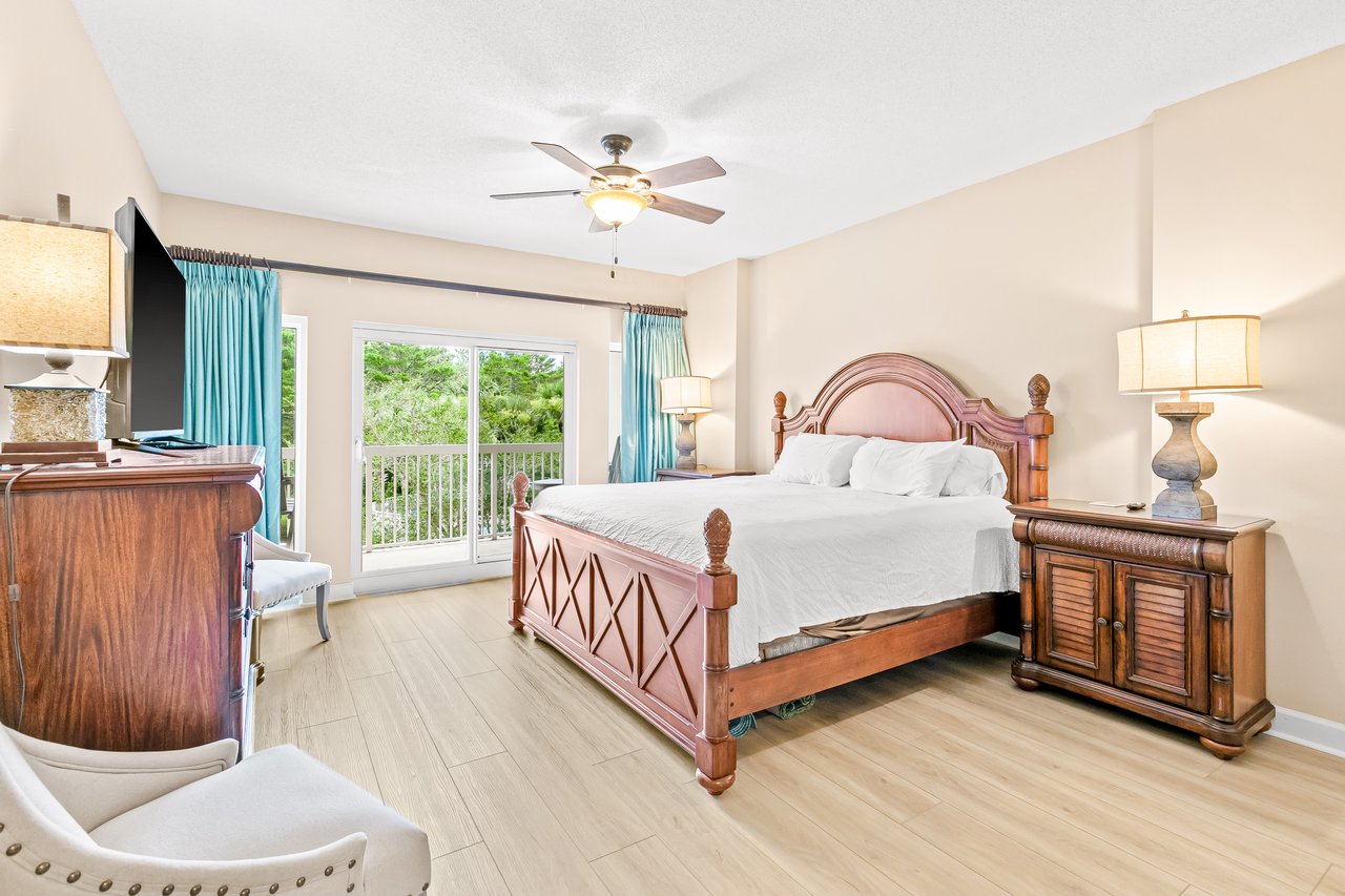 TOPS'L Summit 207A by The Tops'l Lodging Company is a thoughtfully designed studio condominium offering a comfortable, resort-style stay just moments from the shoreline. This open-concept retreat is ideal for couples or small families seeking a relaxed beach getaway with full access to premier resort amenities. The studio features a bright, welcoming interior with abundant natural light and a well-appointed living space perfect for unwinding after a day in the sun. A plush king bed anchors the sleeping area, while the seating area invites you to relax with a favorite movie or simply enjoy quiet downtime. Step out onto the private balcony to take in tranquil views of the surrounding greenery and enjoy peaceful mornings or sunset moments. A convenient kitchenette allows for easy meal preparation, ideal for light breakfasts, snacks, or casual dining in. The spacious bathroom includes a walk-in shower, adding a spa-like touch to your stay, while in-resort laundry access enhances everyday convenience. Enjoy access to an impressive collection of resort amenities, including multiple indoor and outdoor swimming pools, a hot tub, sauna, fitness center, and tennis facilities. A complimentary resort shuttle makes it easy to move throughout the property and reach the beach without effort, creating a seamless and elevated vacation experience from start to finish. Must be 25 years or older to rent.