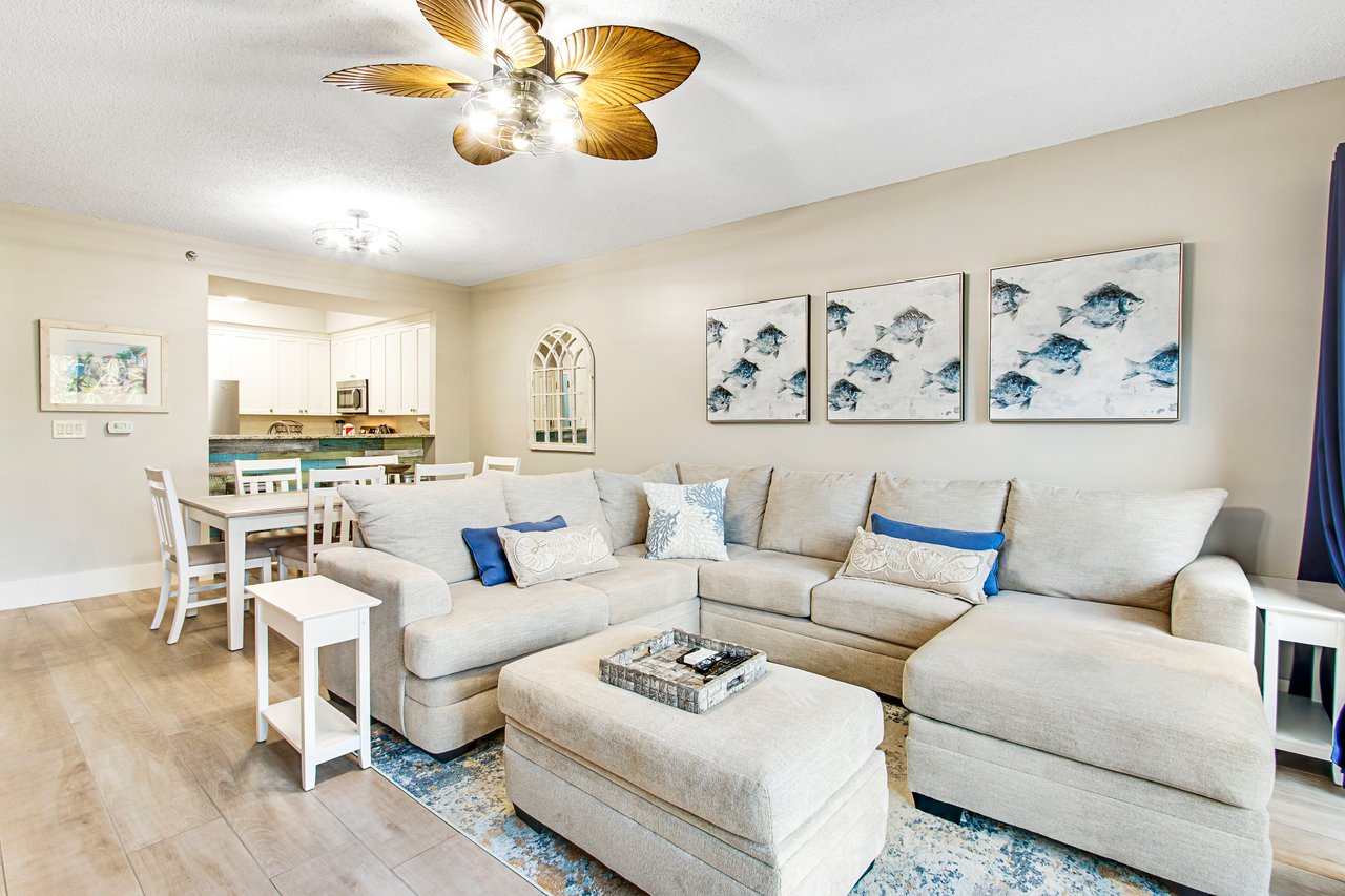TOPS'L Summit 211 by The Tops'l Lodging Company is an updated two-bedroom, two-bath condominium offering peaceful beach views and a comfortable resort retreat just moments from the shoreline. Designed for relaxed coastal living, this inviting residence is ideal for families or couples seeking a well-appointed home base within a full-service beachfront resort. Inside, the open floor plan creates a bright and welcoming atmosphere, anchored by a spacious living area perfect for unwinding after a day in the sun. The thoughtfully updated kitchen is fully equipped for preparing meals and snacks, while the adjacent dining area invites everyone to gather and reconnect. Step onto the private balcony to enjoy tranquil views and gentle coastal breezes, an ideal setting for quiet mornings or relaxed evenings. Both bedrooms are comfortably arranged to provide restful, private retreats, and in-unit laundry along with climate-controlled interiors adds everyday convenience to your stay. Enjoy access to an impressive collection of resort amenities, including multiple swimming pools, hot tubs, tennis courts, a fitness center, and a sauna, all seamlessly integrated into the resort experience. Convenient resort transportation makes beach access effortless, allowing you to move easily between shoreline relaxation and on-site recreation. TOPS'L Summit 211 offers a balanced blend of comfort, convenience, and resort-style living for a memorable Miramar Beach getaway. Must be 25 years or older to rent.
