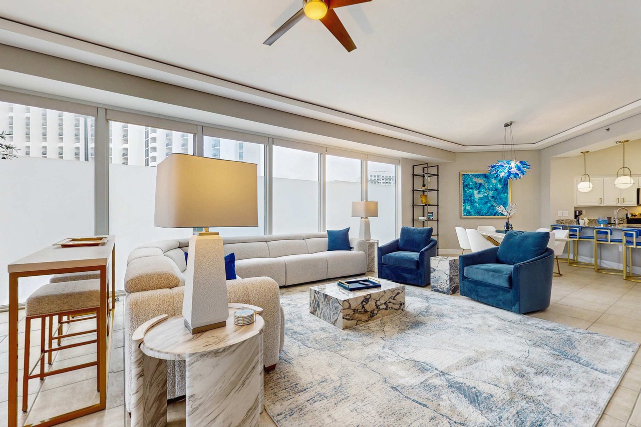 TOPS'L Tides 0106 by The Tops'l Lodging Company is a refined 3-bedroom, 3-bath condominium with beautiful Gulf views and an extra-large private balcony overlooking the sparkling resort pool. Bright, stylish, and designed for effortless coastal living, this spacious retreat is perfect for families or friends who want room to relax while enjoying the elevated TOPS’L resort experience. Inside, you’ll find a welcoming open living space with a fresh, upscale feel—ideal for slow mornings, beach-day breaks, and relaxed evenings together. The fully equipped kitchen makes it easy to prepare everything from quick snacks to full meals, while the wet bar adds an extra touch of vacation-ready convenience for mixing drinks and keeping refreshments close at hand. A private washer and dryer is also included, making it simple to refresh swimsuits and beach towels throughout your stay. The true highlight is the expansive furnished balcony, where you can sip coffee with the Gulf in view, enjoy alfresco lounging in the sea breeze, and toast the sunset as the day winds down. Beyond your door, enjoy access to a full lineup of resort amenities that make every day feel like a getaway. Spend your afternoons by the pools, unwind in the hot tub, recharge in the sauna, and keep up your routine in the fitness center. For a little friendly competition, enjoy access to tennis, basketball, and pickleball courts—perfect for adding a playful, active energy to your stay. For a signature on-property favorite, enjoy access to Blue Dunes Grill on the ocean viewing deck, where you can enjoy a relaxed meal with unforgettable coastal views—without ever leaving the resort. From breezy balcony mornings to sunset wind-downs by the water, TOPS'L Tides 0106 delivers the space, comfort, and resort lifestyle that make a beach vacation truly effortless. Must be 25 years or older to rent. Things to Know Beach Rules: Please note that no canopies or tents are allowed on TOPS'L Beach to ensure unobstructed views for all guests.