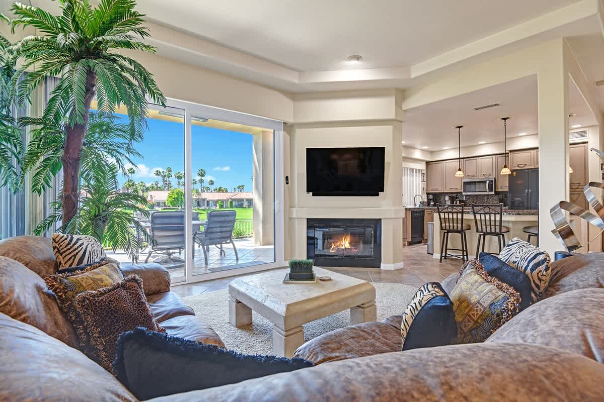 VB938 - Safari Vibe - Alice Lodging Permit: STR2023-0540 This spacious remodeled condo at the popular Palm Valley Country Club lives like a house, featuring two private en suite bedrooms and a comfortable den/media room that includes a sleeper sofa for added flexibility. The home is ideal for up to 4 guests, with room for an additional visitor if needed. The open, fully equipped kitchen with a large bar connects seamlessly to the inviting living room—perfect for gathering, dining, or simply relaxing while enjoying the sweeping views of the water, greenbelt, and mountains beyond. In the living room, you’ll find cozy seating around the TV and fireplace, or step outside to the expanded patio with a large dining table and built-in barbecue grill for true indoor-outdoor living. After a day on the golf course or exploring the desert, retreat to the spacious main bedroom with its own private sitting patio and en suite bathroom featuring a bathtub and dual-sink vanity. The guest bedroom also offers its own en suite with a walk-in shower, while the full guest bathroom—conveniently located near the den and laundry area—ensures comfort and privacy for everyone. Guests will also enjoy access to Palm Valley’s Tennis and Fitness Membership, offering use of the club’s world-class tennis courts, pickleball, fitness center, and social facilities. This home requires a 4-night minimum stay and offers all the comfort, convenience, and resort amenities of a true Palm Desert retreat. Ring Camera at the Front Door. CLUB ACCESS: Palm Valley Country Club is an upscale, private country club. Renter access to club facilities includes the fitness club, Tennis / pickleball courts. For this property, as well as the dining facilities, day spa and hair salon only. Numerous fine golf courses with public access are located nearby, however. And forty-six community swimming pools are available to renters at PVCC Per local ordinance, all guests are presented local Good Neighbor Policies to abide by during their stay. A copy of these policies will be sent upon confirmation of your reservation. Must be 25 years of age or older to rent. Please note that the person paying for the reservation needs to be the one checking in and the same person must stay in the home throughout the reservation.