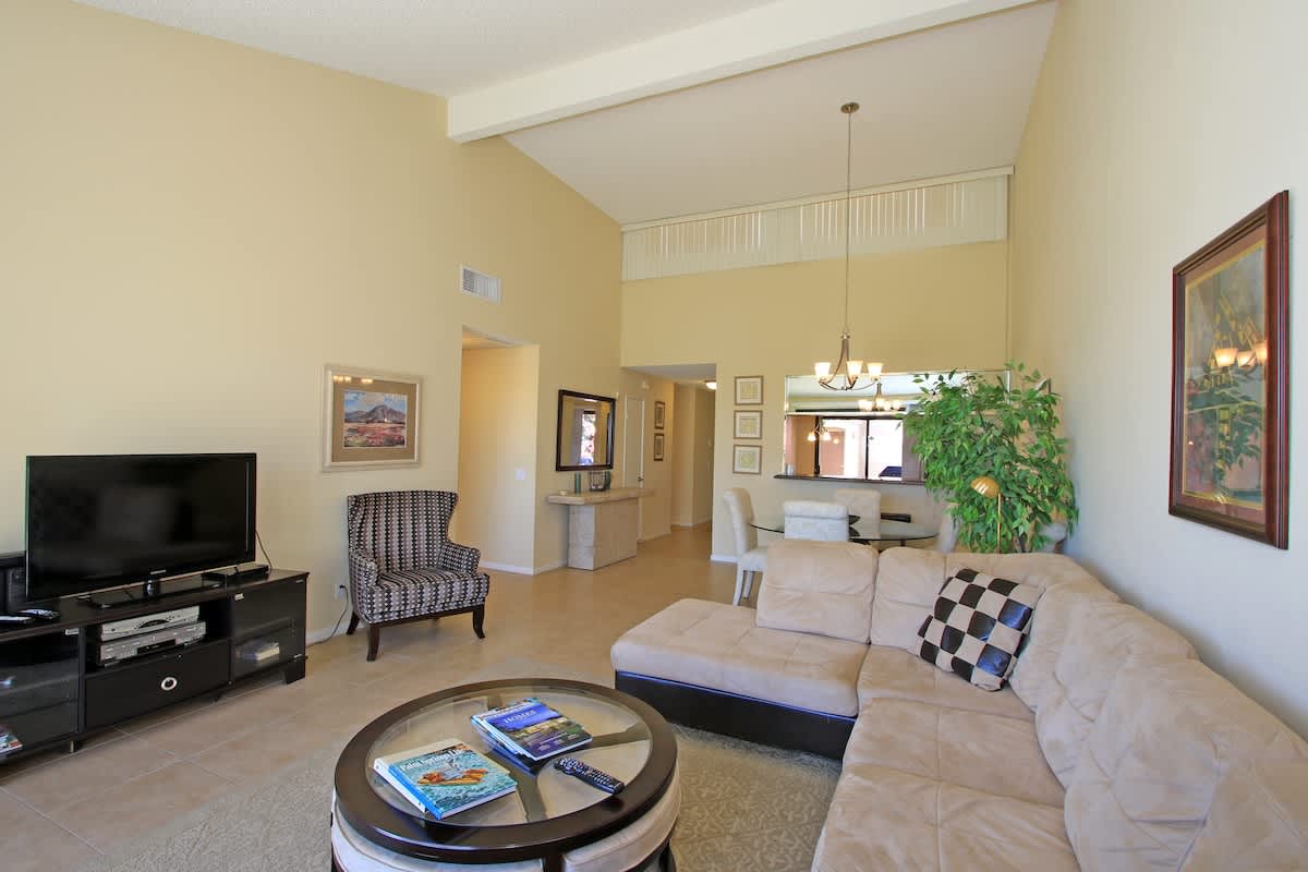 CLUB ACCESS: Palm Valley is an upscale, private country club. Renter access to club facilities is dependent upon the membership status of the property owner. For this property, renters will have pay-per-use access to the dining facilities, day spa and hair salon only. Numerous fine golf courses with public access are located nearby, however. Forty-six community swimming pools are available to renters.